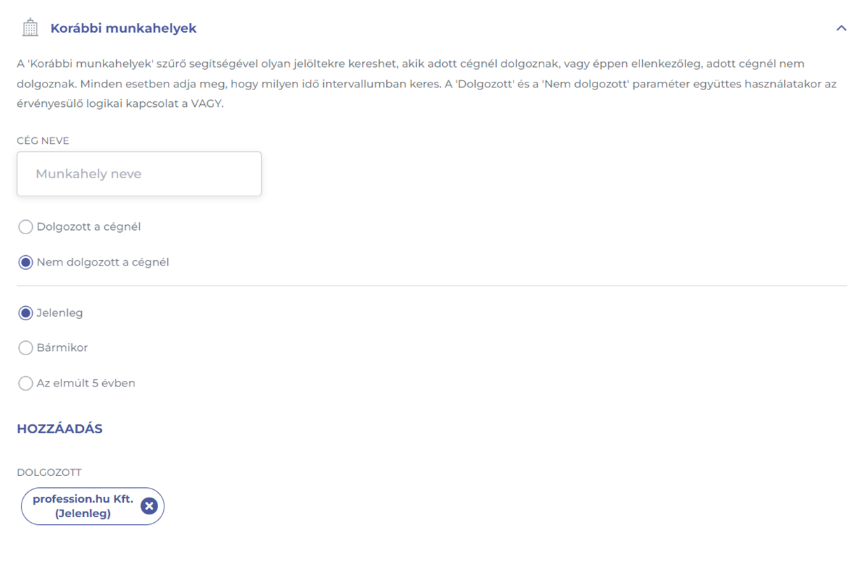 Ezen kívül az adatbázisban próbakeresést olyan, a Profession.hu-n regisztrált, munkatársaink által végzett validációs folyamaton átesett cégek végezhetnek, akiknek jelenleg nincs önéletrajz adatbázis hozzáférésük, és az elmúlt 3 hónapban demót sem igényeltek. Próbakeresés során a jelentkezők személyes adatait (teljes név, email cím, telefonszám) nem jelenítjük meg, a legfrissebb munkatapasztalatuk is elrejtésre kerül, illetve a jelöltek CV dokumentumai sem tölthetők le a munkaadók számára. Ezeken kívül a próbakeresés során teljes adatlapokat látnak a munkaadók, így ellenőrizhetik a számukra releváns jelöltek számát és minőségét.