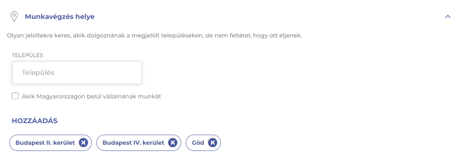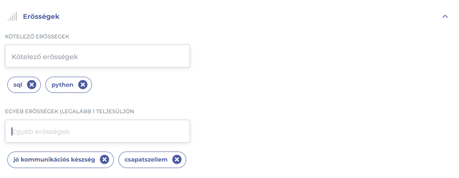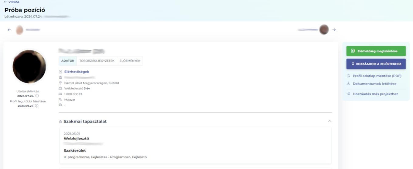 - A profiljában bármely adatát frissíti (személyes, tapasztalat, képzettség, erősségek, elvárások, dokumentumok)