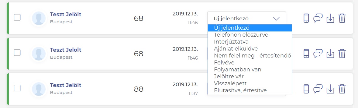 Eddig is ismert funkció volt hirdetőink számára a státuszállítás, amellyel nagyon egyszerűen tudták jelezni azt, hogy a jelöltek hol tartanak a toborzási folyamatban.
