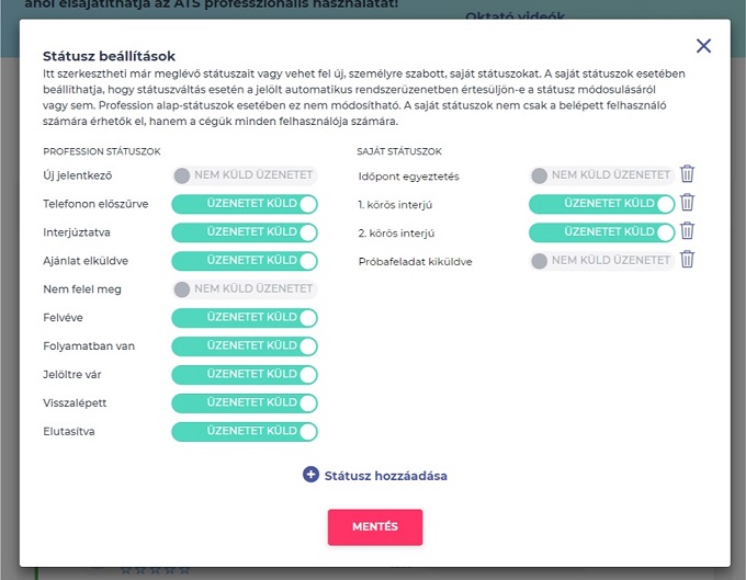 Az év közben futtatott munkaadói kutatásunkból az látszott, hogy az ATS-ünk legtöbbet hiányolt funkciói a személyre szabható státuszok és üzenetek. Nézzük meg, hogy mostantól miként tudunk felvenni saját státuszokat, és tudunk elmenteni sablon üzeneteket.
